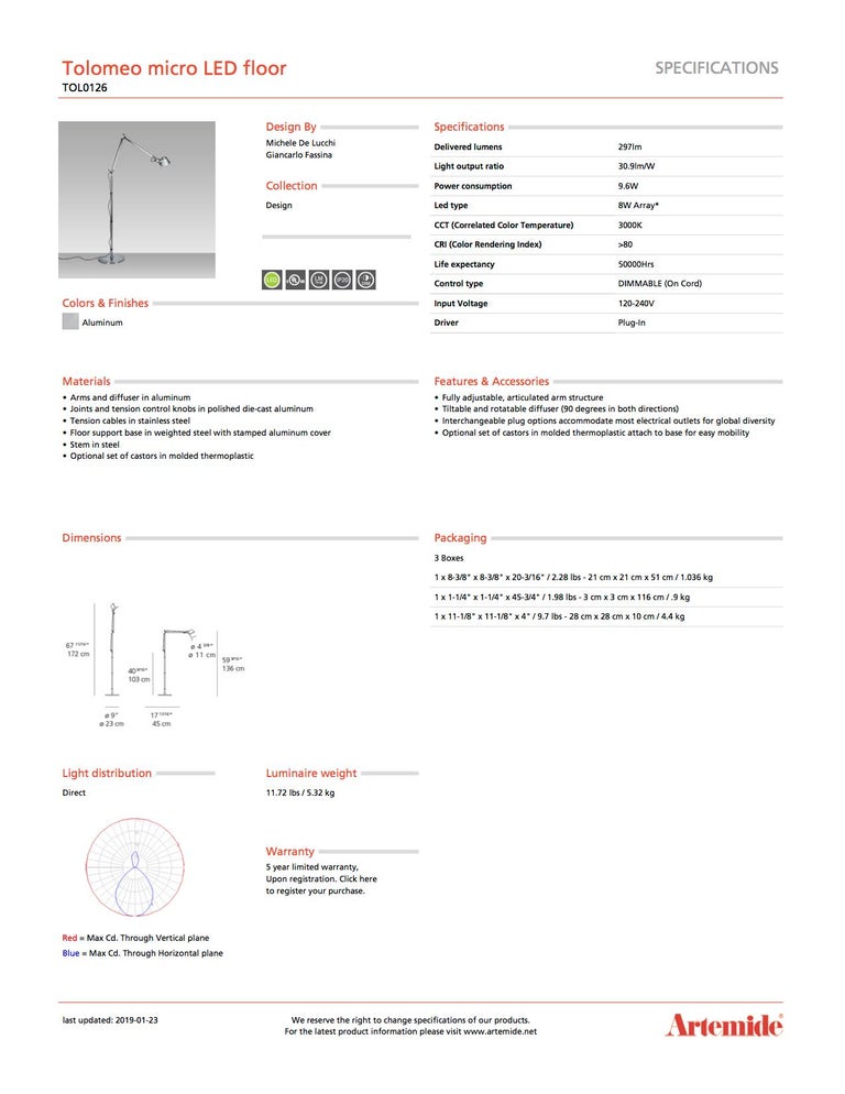 Artemide Tolomeo Micro Led Floor Lamp In Aluminum For Sale At 1stdibs