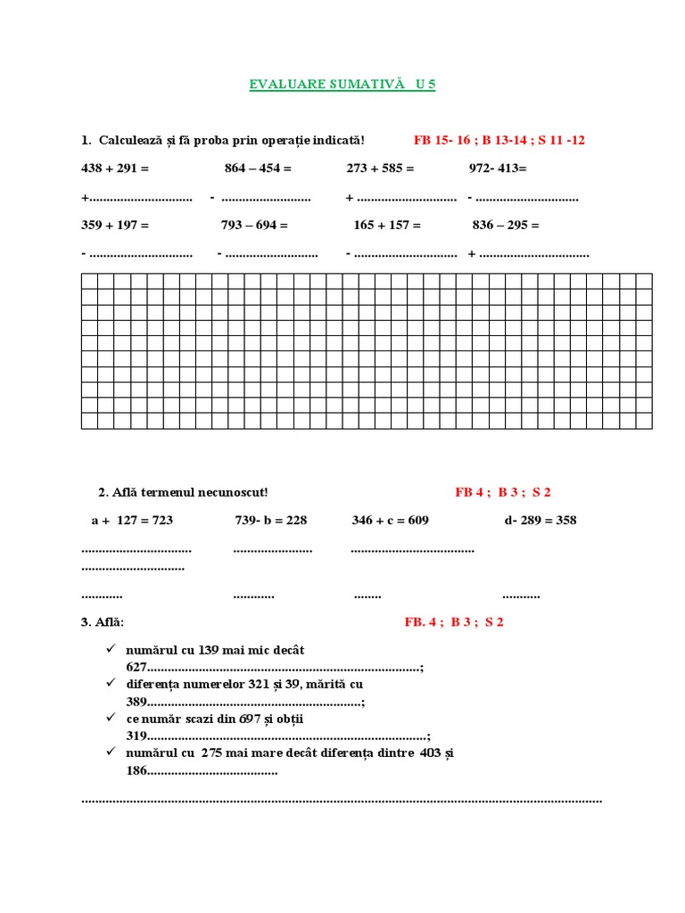 Exerciții De Adunare și Scădere 0 31 Materiale Didactice Matem