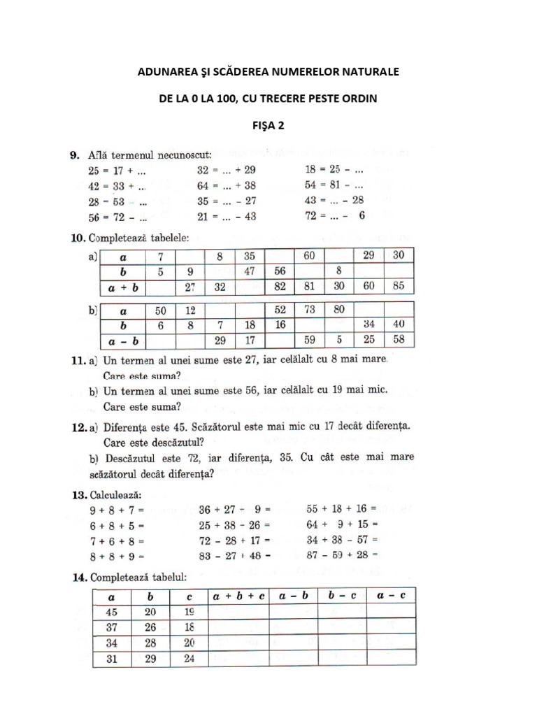 Adunarea De La 0 A Si Scăd 0 La 100 Erea Num Cu Trece Fisa 2