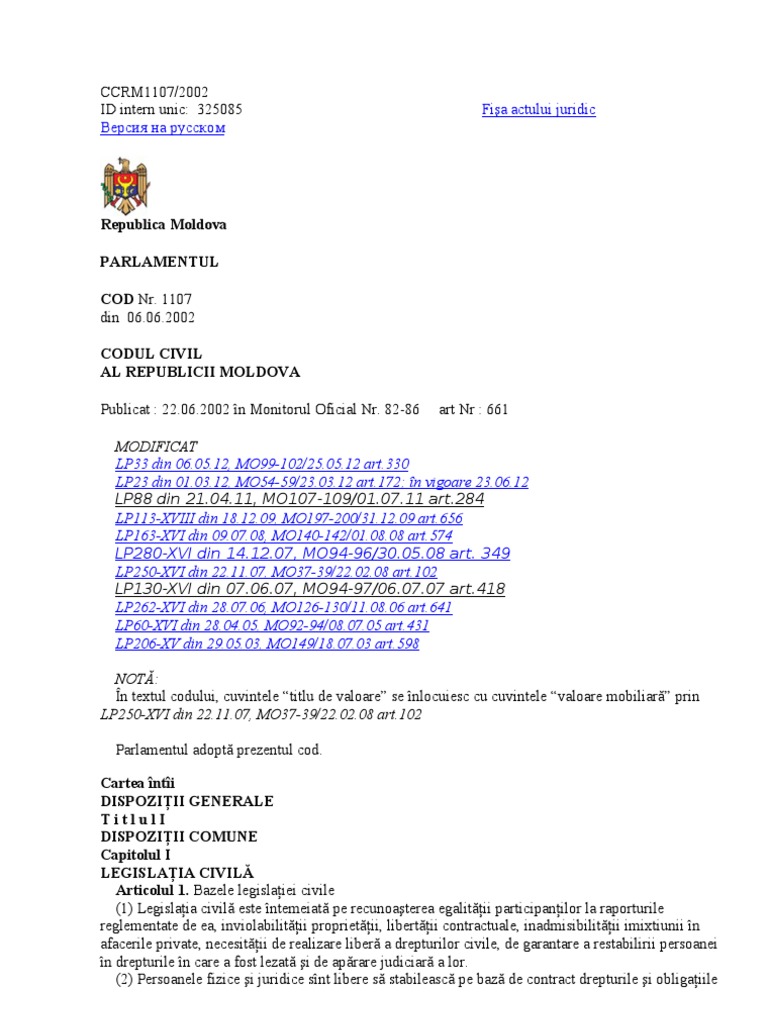 Versiya Na Russkom Fisa Actului Juridic Republica Moldova