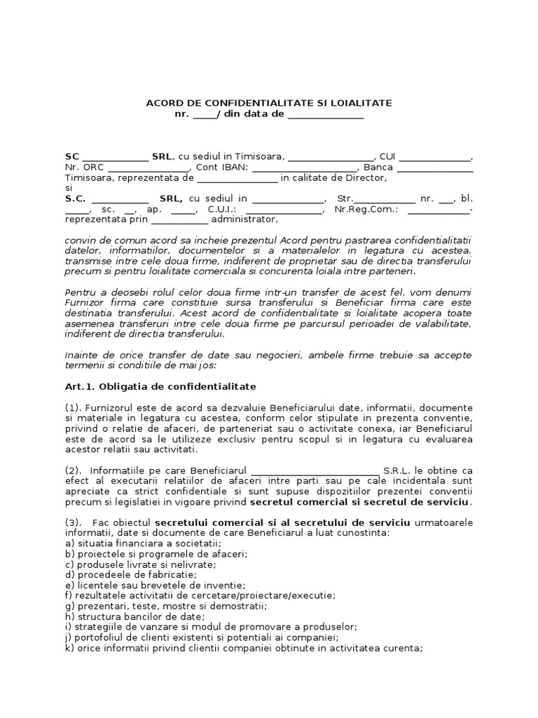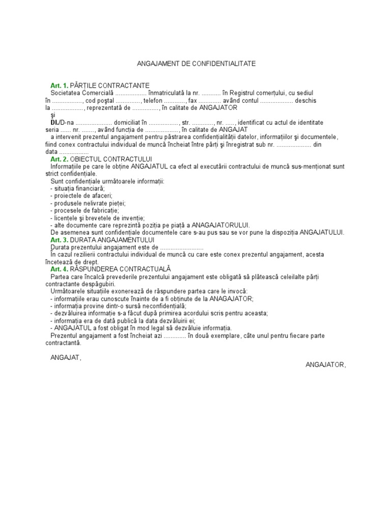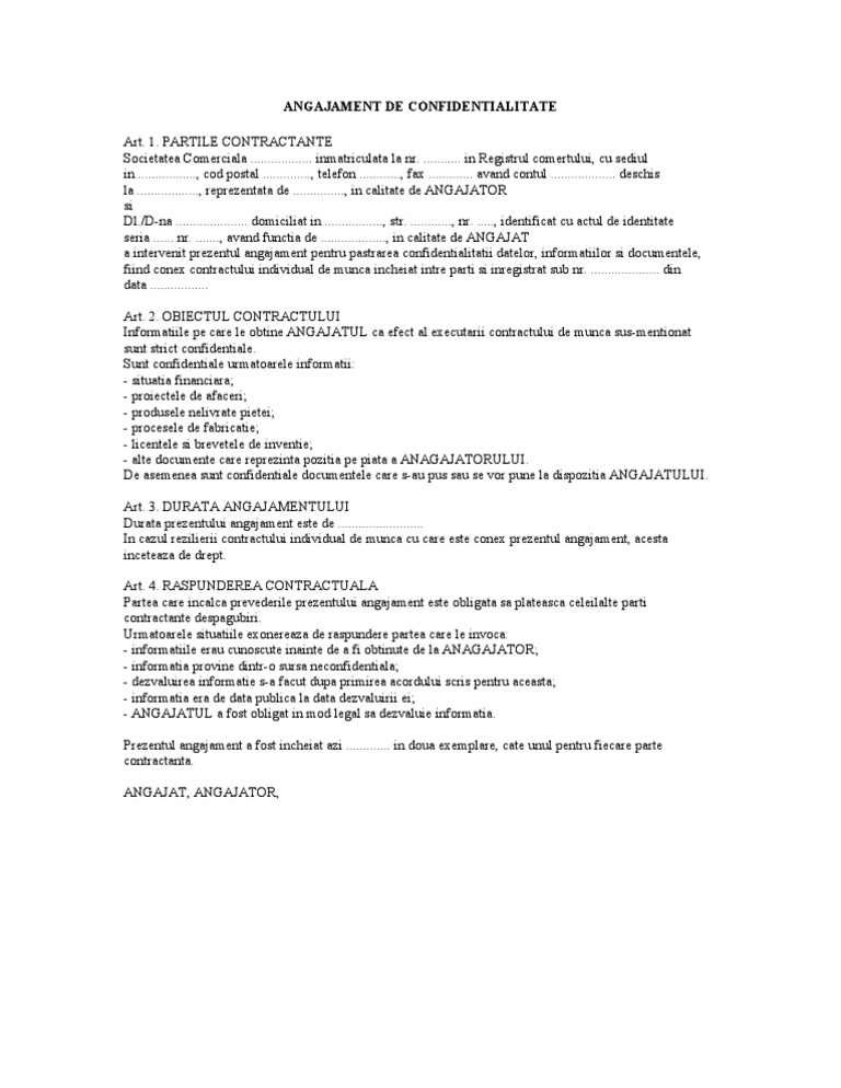 Fillable Online Angajament De Confidentialitate Mentenanta