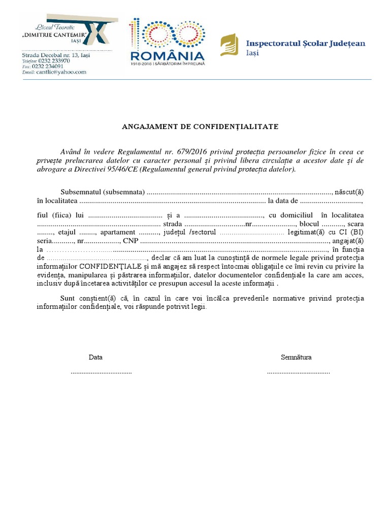 Angajament De Confidenţialitate Insse Ro De Confidentialitate