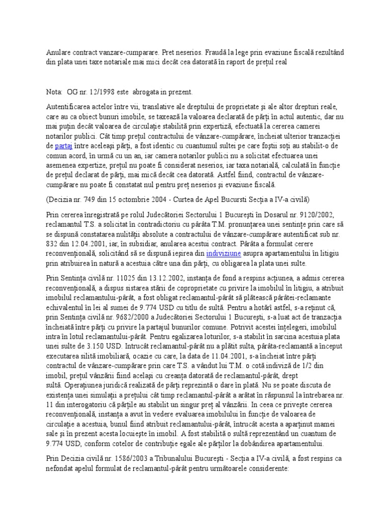 Referat Anularea Contractelor De Vanzare Cumparare A Imobilelor