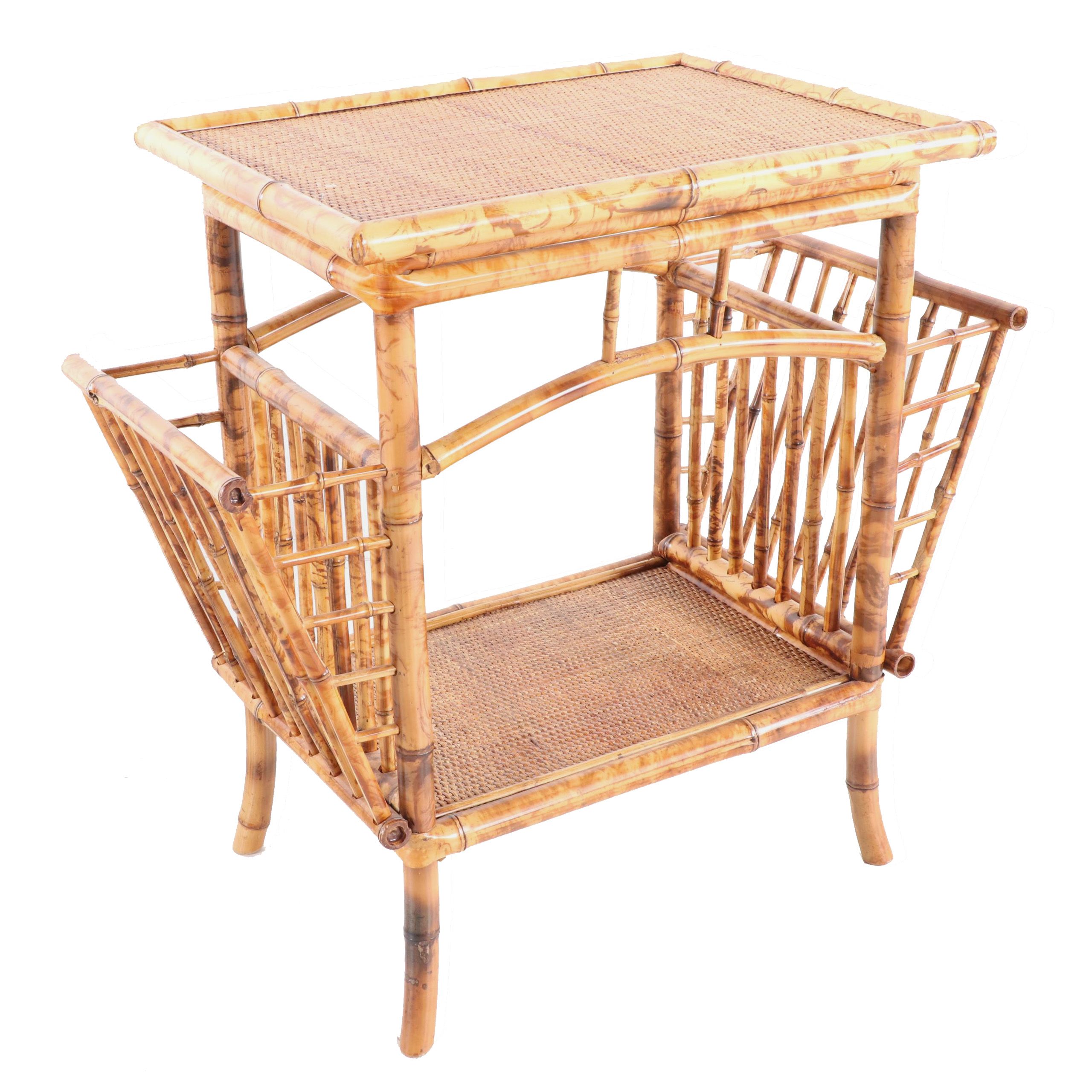 Vintage Mid Century Bamboo Rattan Magazine Rack Side Table
