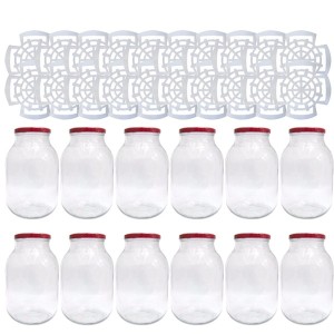 12 X Borcan 4l Din Sticla Cu Capac 20 X Presa Muraturi 2l 3l