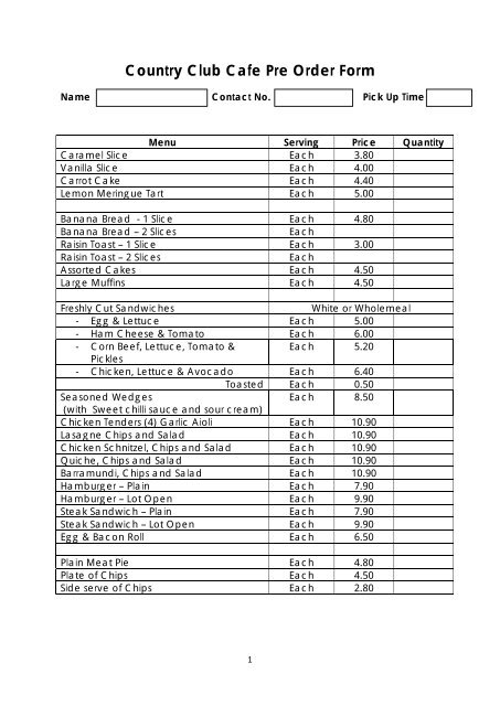 Fillable Online 1132 Cafe Order Form Fax Email Print Pdffiller