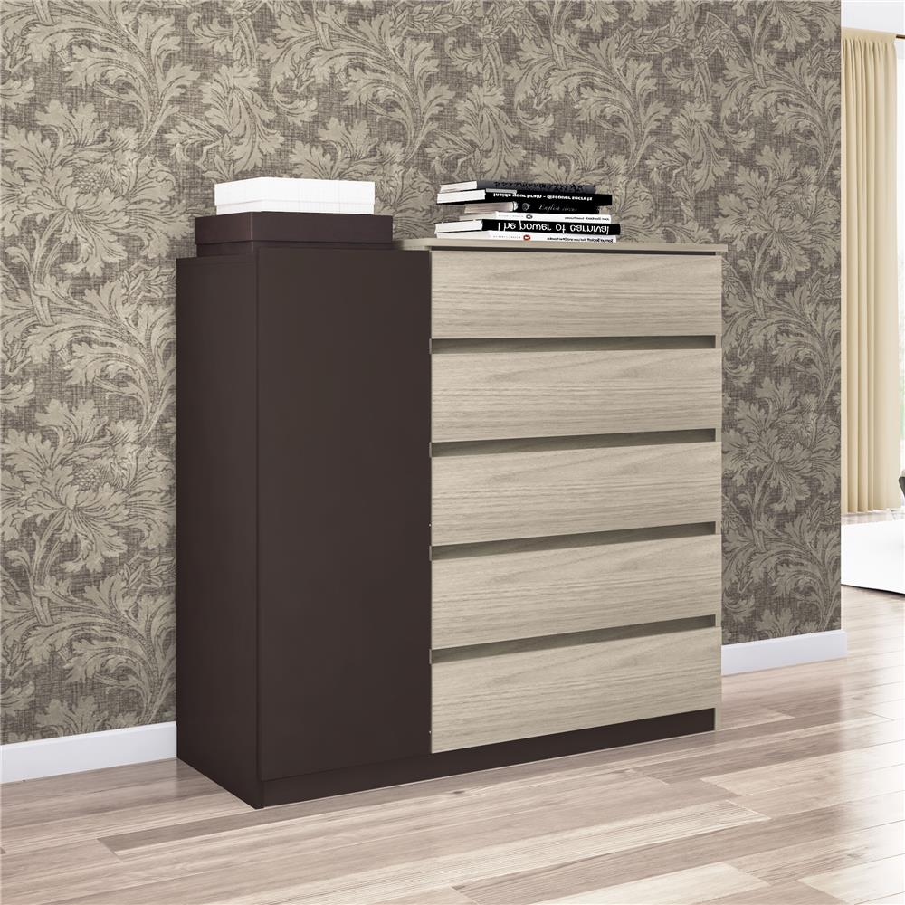 Comoda Bartira Blumenau Com 5 Gavetas E 1 Porta Carvalho