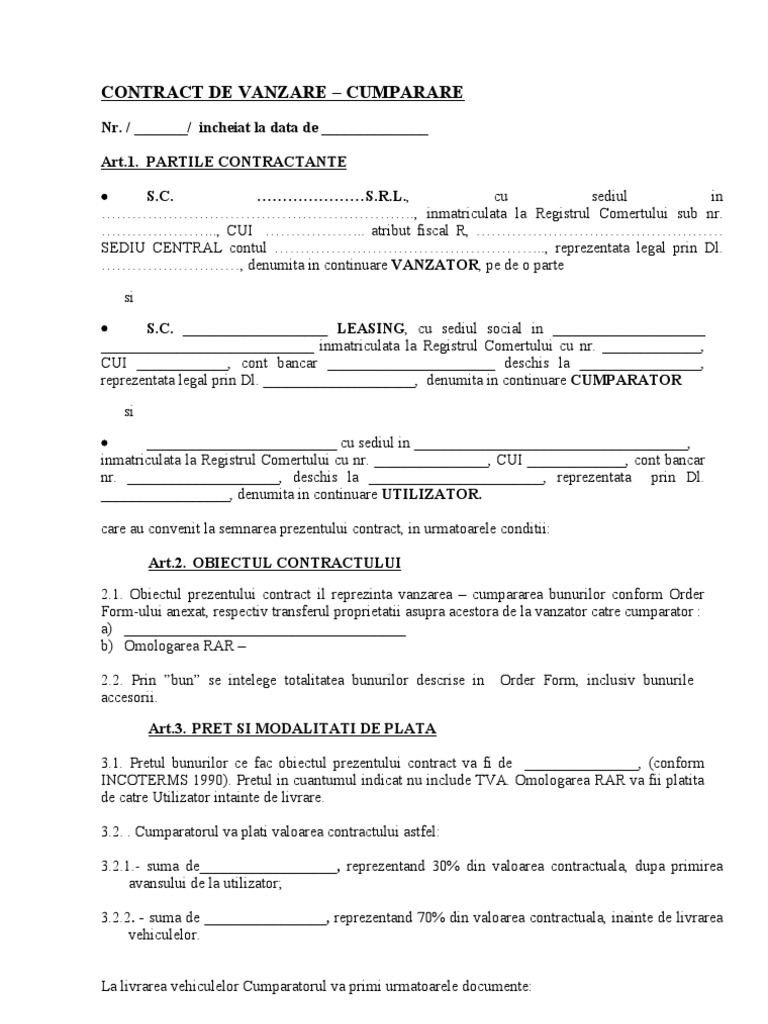 Contract Vanzare Cumparare Vehicul Folosit Pdf Document