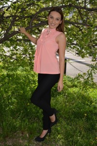 Bluza De Ocazie Cu Volanase Fashion In Fata Culoare Roz Piersica