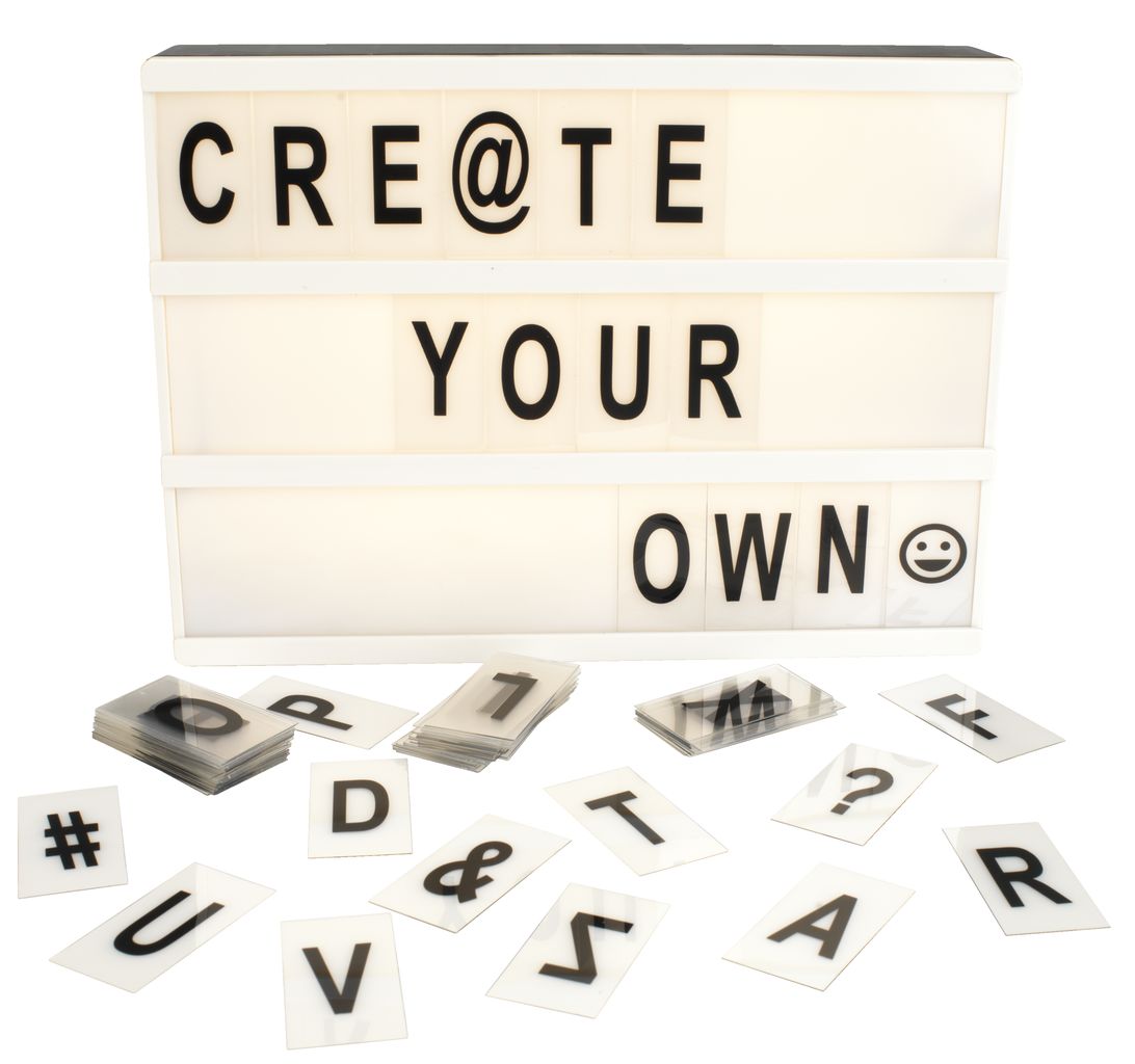 Caseta Luminoasa Cinema Vintage Cu 85 Litere Cifre Si Simboluri