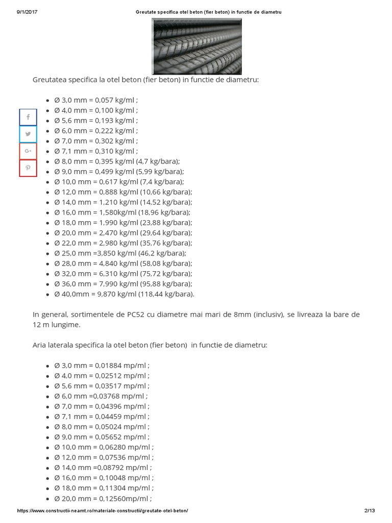 Greutate otel beton fier beton pe diametre ø 6 mm ø 32 mm greutate 0 222 kg ml 6 315 kg ml. Astfel putem calcula forţele ce acţionează asupra unei structuri sau greutatea de transport. Preturile si stocurile sunt actualizate in fiecare zi la ora 06 00. De asemenea in gama noastra de accesorii gasesti.
