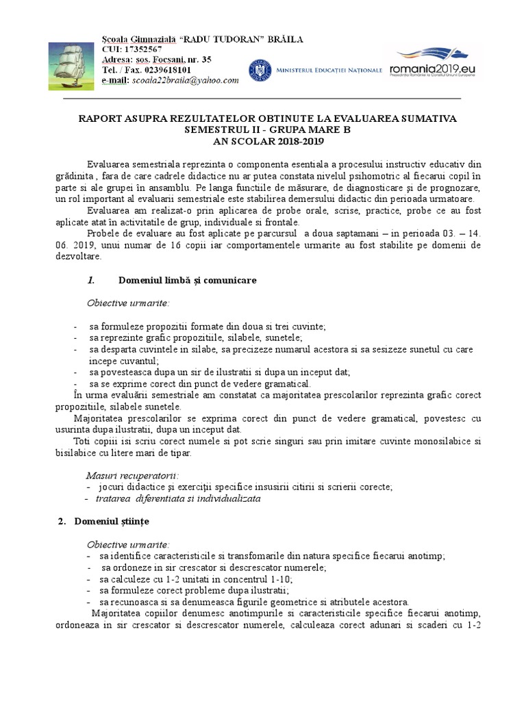 Raport Evaluare Finala Grupa Mare Sem Ii 2019
