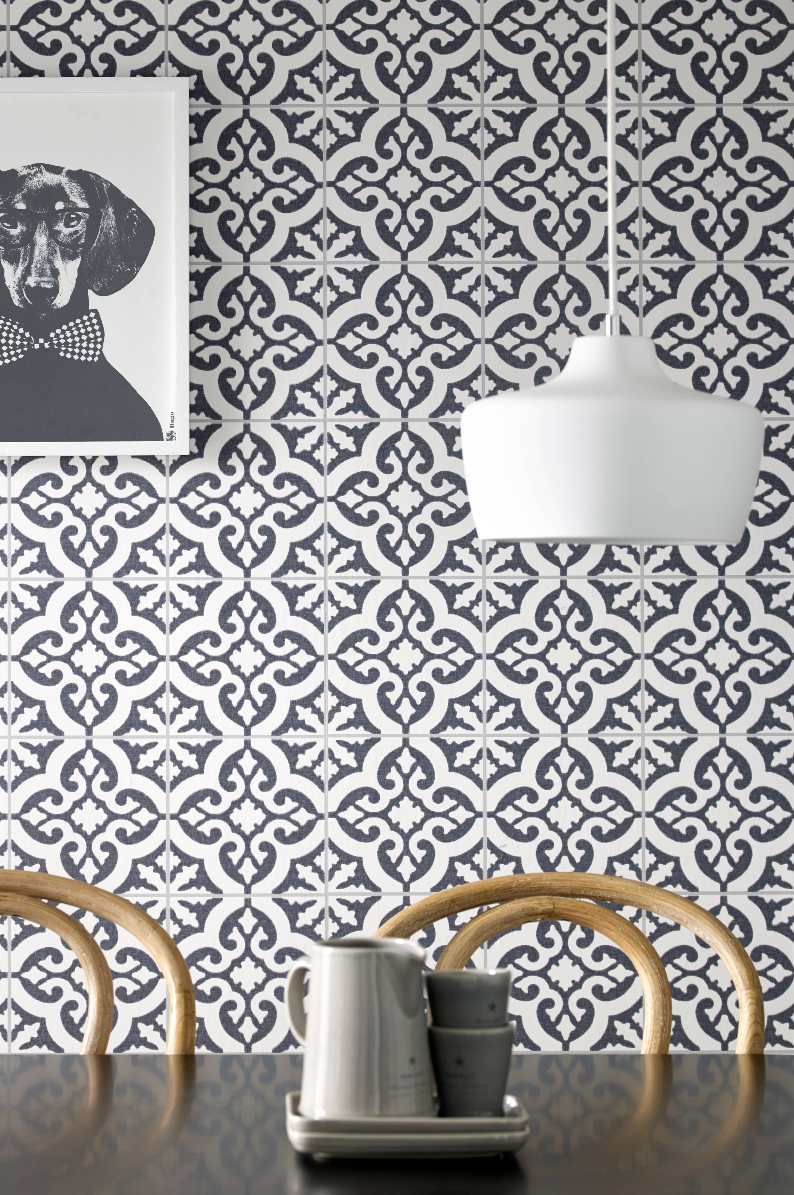 Boho Rhapsody Tapet Marockanska Kakelplattor Morkgra Svart