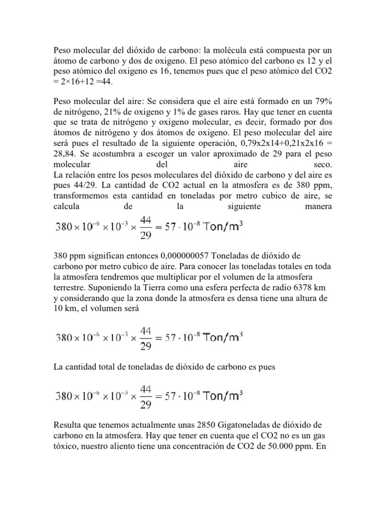 Peso Molecular Del Dioxido De Carbono Dioxido De Carbono Atmosfera